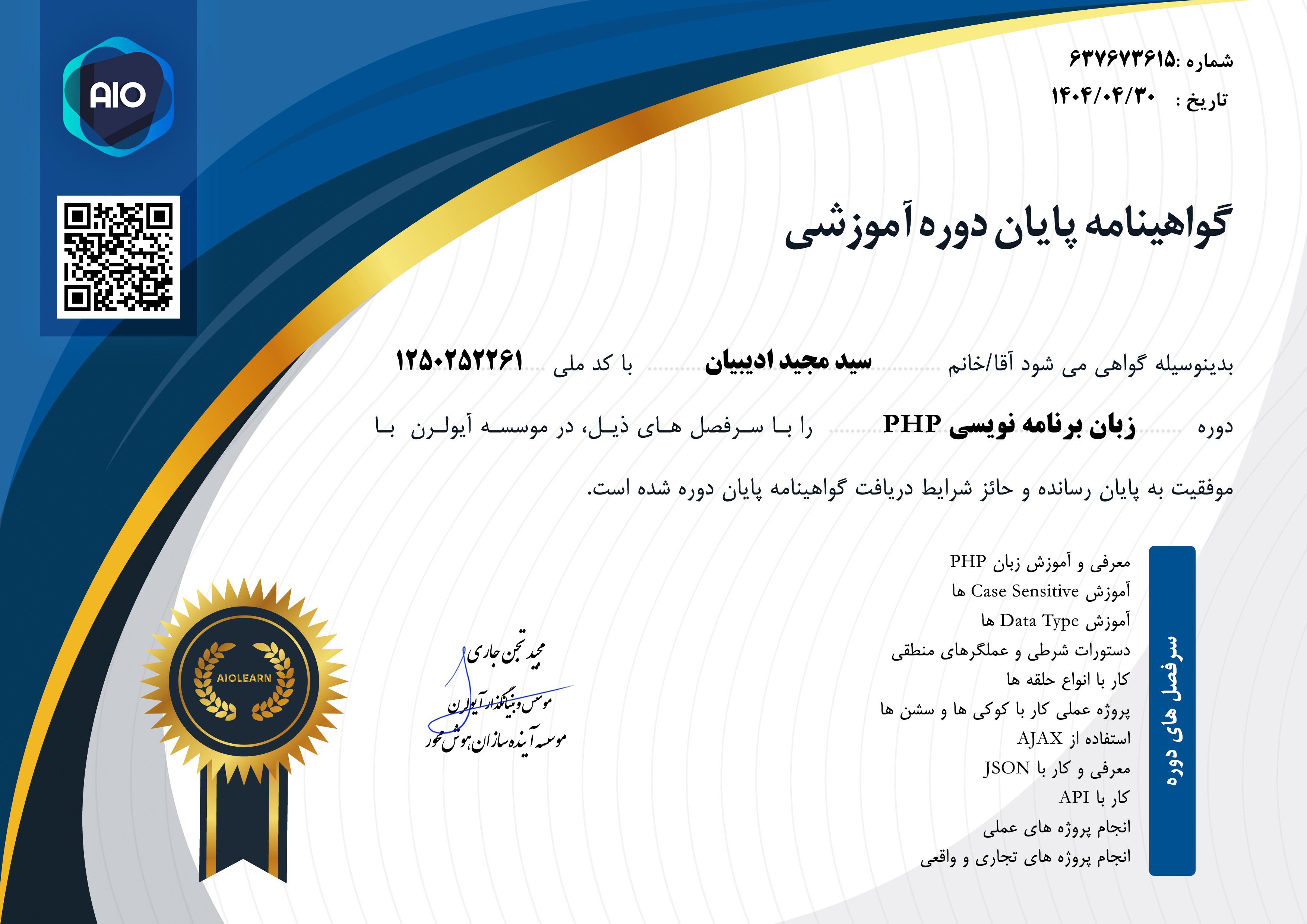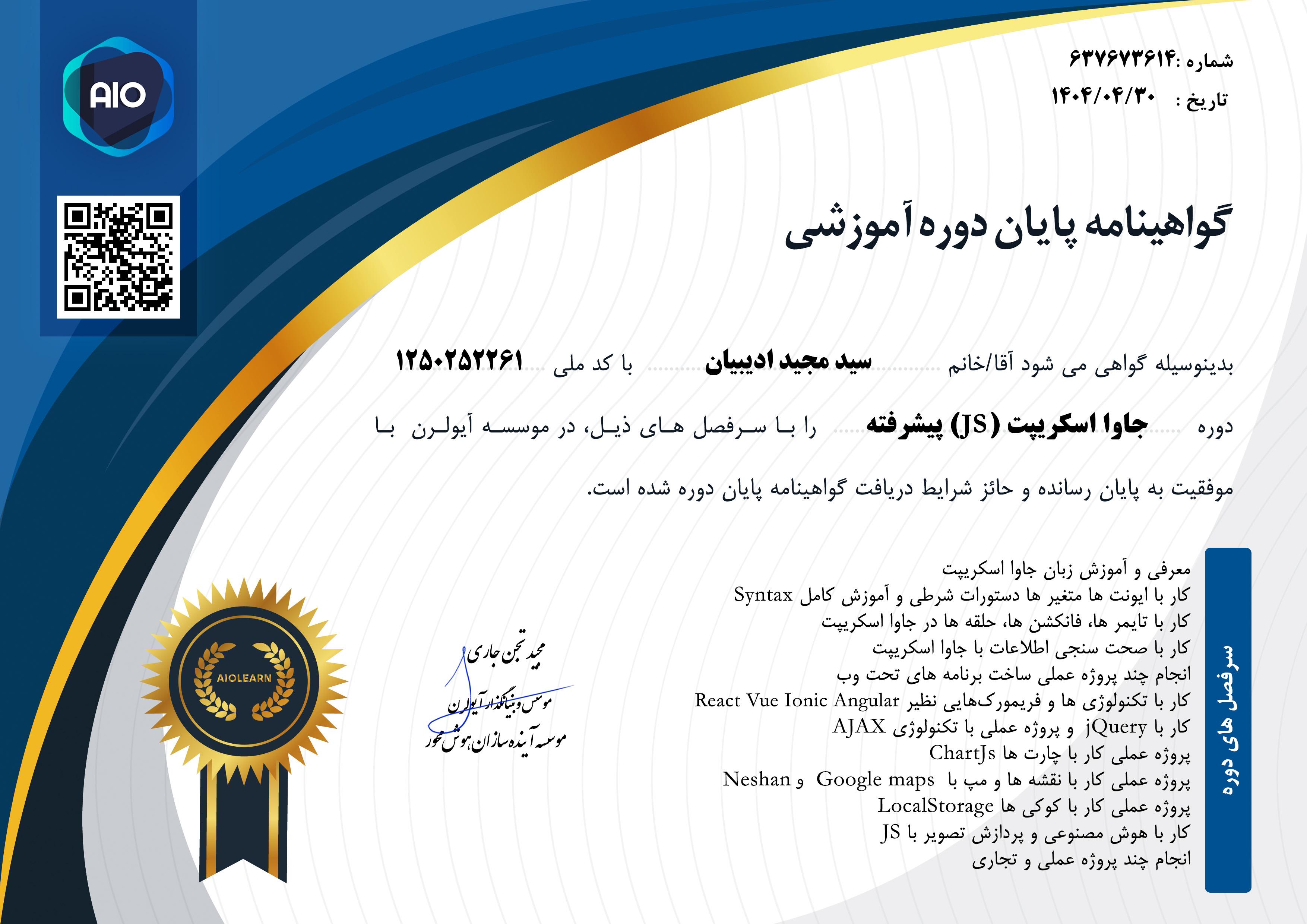 " مـن و تیم کوچک و دوستداشتنـیام ایـنجا در تلاشه تا بهـترین تجربههای برنـامهنویـسی رو برای شما خلـق کنه. من با حدود پنـج سـال سابقـه در دنیـای برنامهنویـسی، همـیشه در حال یادگیـری و بهروزرسانـی دانـش خودم هستـم. در حال حاضـر، با افتخـار دانشـجوی شرکت آیولـرن هستـم و مدارک HTML,CSS,JS,PHP رو از این مجموعه معتبـر دریافت کردهام. علاوه بر این، تجربه حضـور در کنفرانسها و مسابقاتی چون آیوکاپ و جهاد دانشگاهی امیرکبیر رو دارم که هر کدوم به من کمک کرده تا به سطـح بالاتری در این صنعـت برسم. هدف من همیشه این بوده که با استفـاده از دانش و تجربهام، پروژههای شما رو به بهترین شکل ممکن پیش ببرم. "
